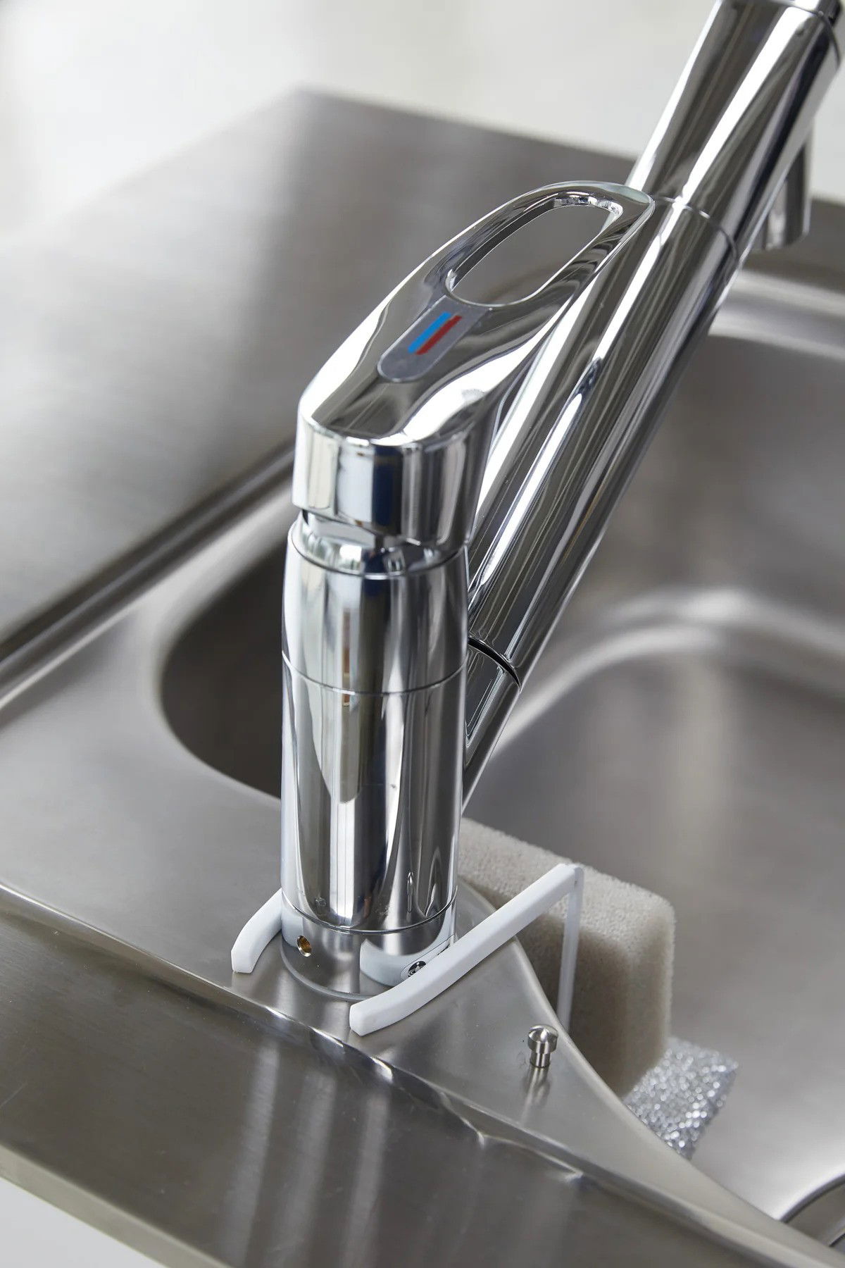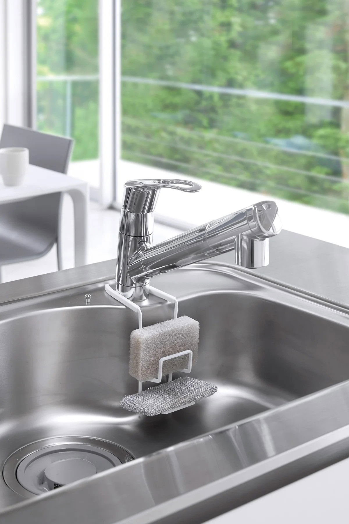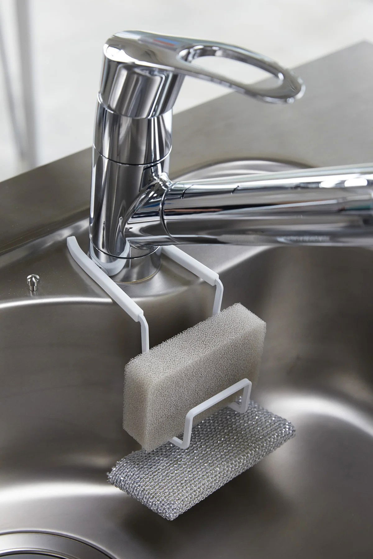 Μία βάση για σφουγγαράκια κουζίνας, που διατηρεί τον νεροχύτη πάντα τακτοποιημένο. Χωράει έως και δύο σφουγγάρια και στερεώνεται εύκολα πάνω στη βρύση.