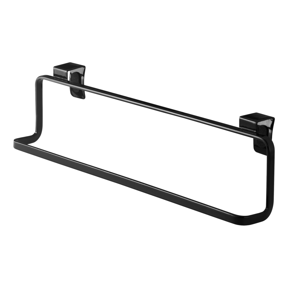 Κρεμάστρα από ατσάλι σε μαύρο χρώμα που θα σας φανεί ιδιαίτερα χρήσιμη για την κουζίνα ή το μπάνιο, αφού σας επιτρέπει να κρεμάσετε πετσέτες χωρίς να τις αναδιπλώσετε και δύο άγκιστρα συγκρατούν με ασφάλεια την κρεμάστρα στην πόρτα του ντουλαπιού.