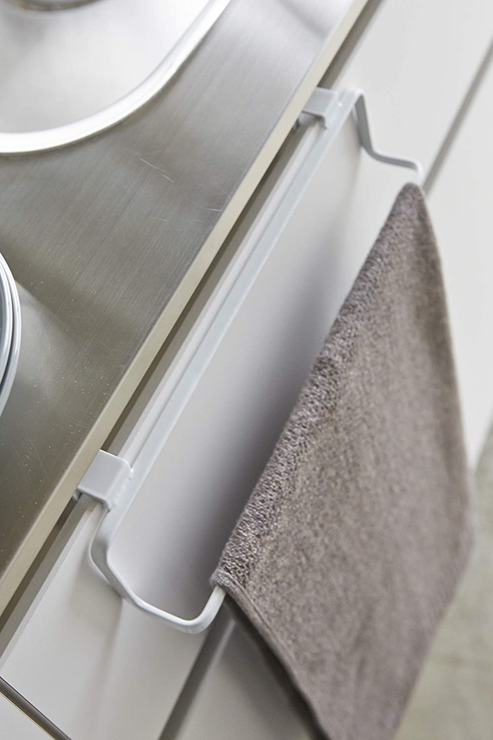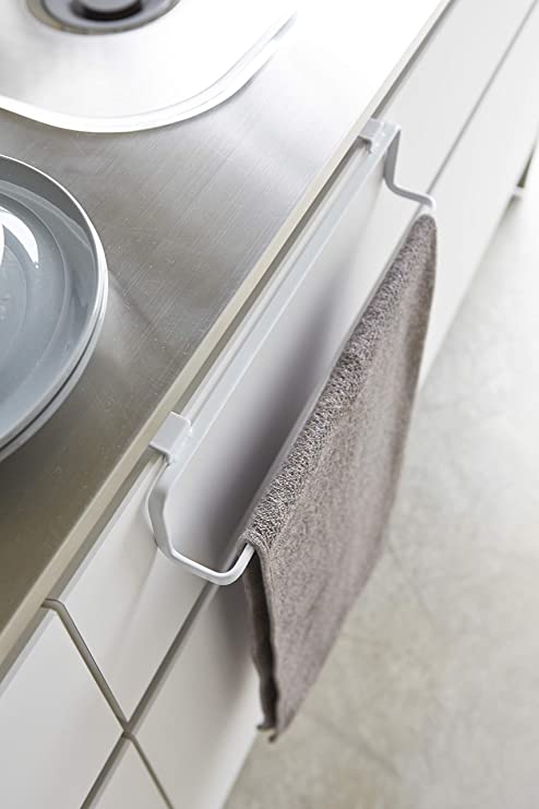 Κρεμάστρα από ατσάλι σε λευκό χρώμα θα σας φανεί ιδιαίτερα χρήσιμη για την κουζίνα ή το μπάνιο αφού σας επιτρέπει να κρεμάσετε πετσέτες χωρίς να τις αναδιπλώσετε και δύο άγκιστρα συγκρατούν με ασφάλεια την κρεμάστρα στην πόρτα του ντουλαπιού.