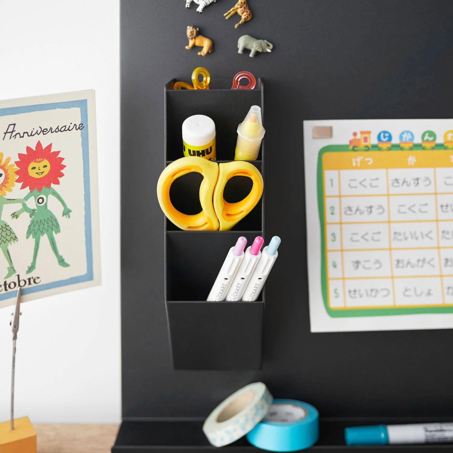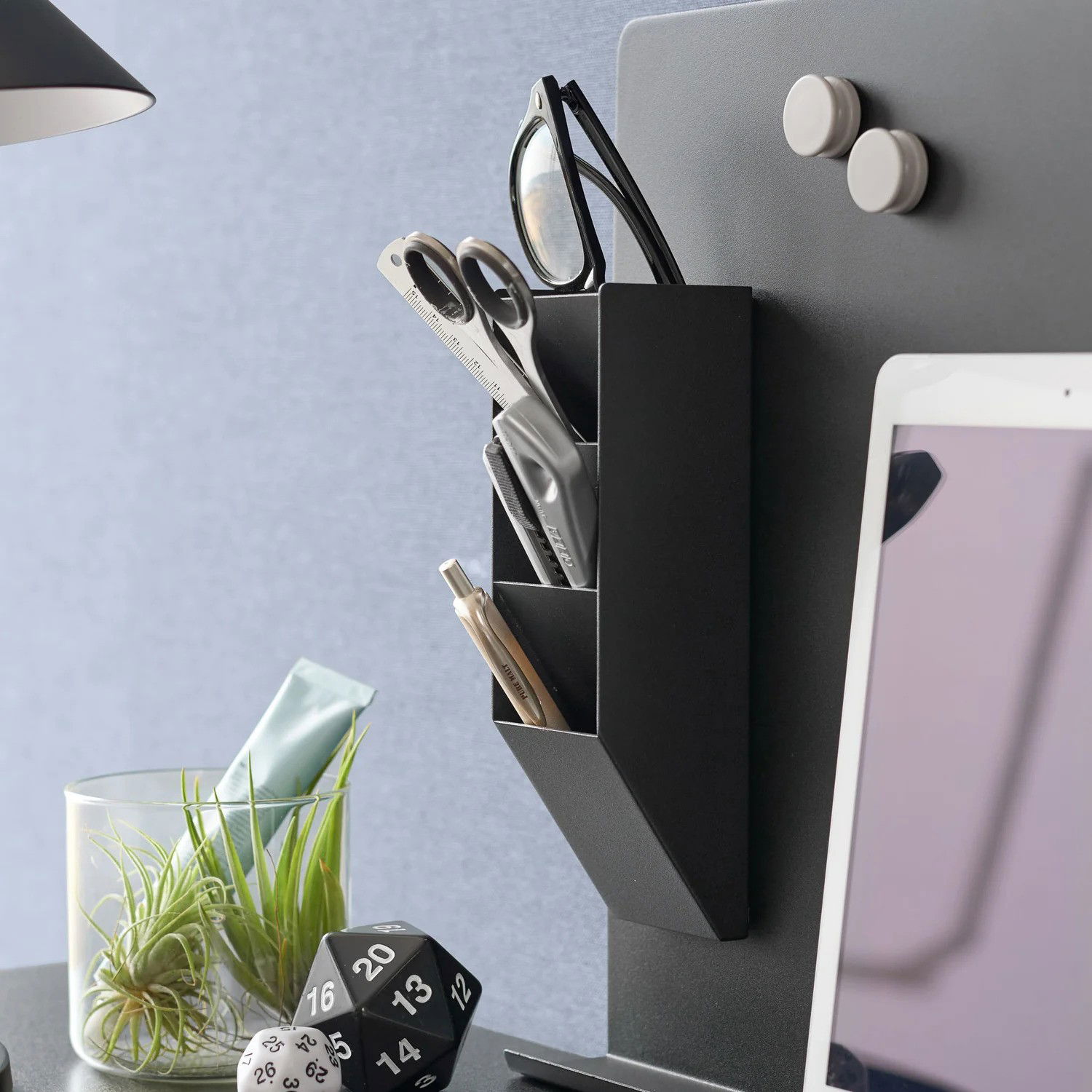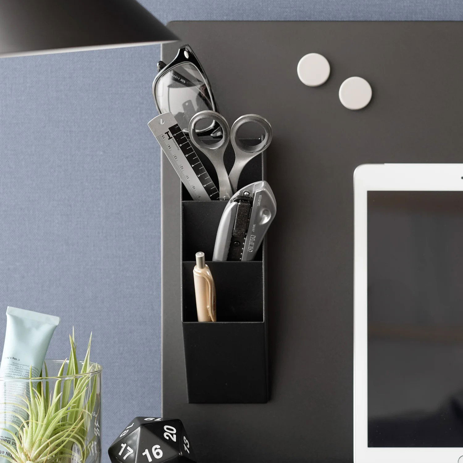 Η μαγνητική μολυβοθήκη στερεώνεται σε μεταλλικές επιφάνειες, όπως το Μαγνητικό Πάνελ Γραφείου ή το ψυγείο, παρέχοντας πρακτική αποθήκευση για στυλό και χαρτικά.