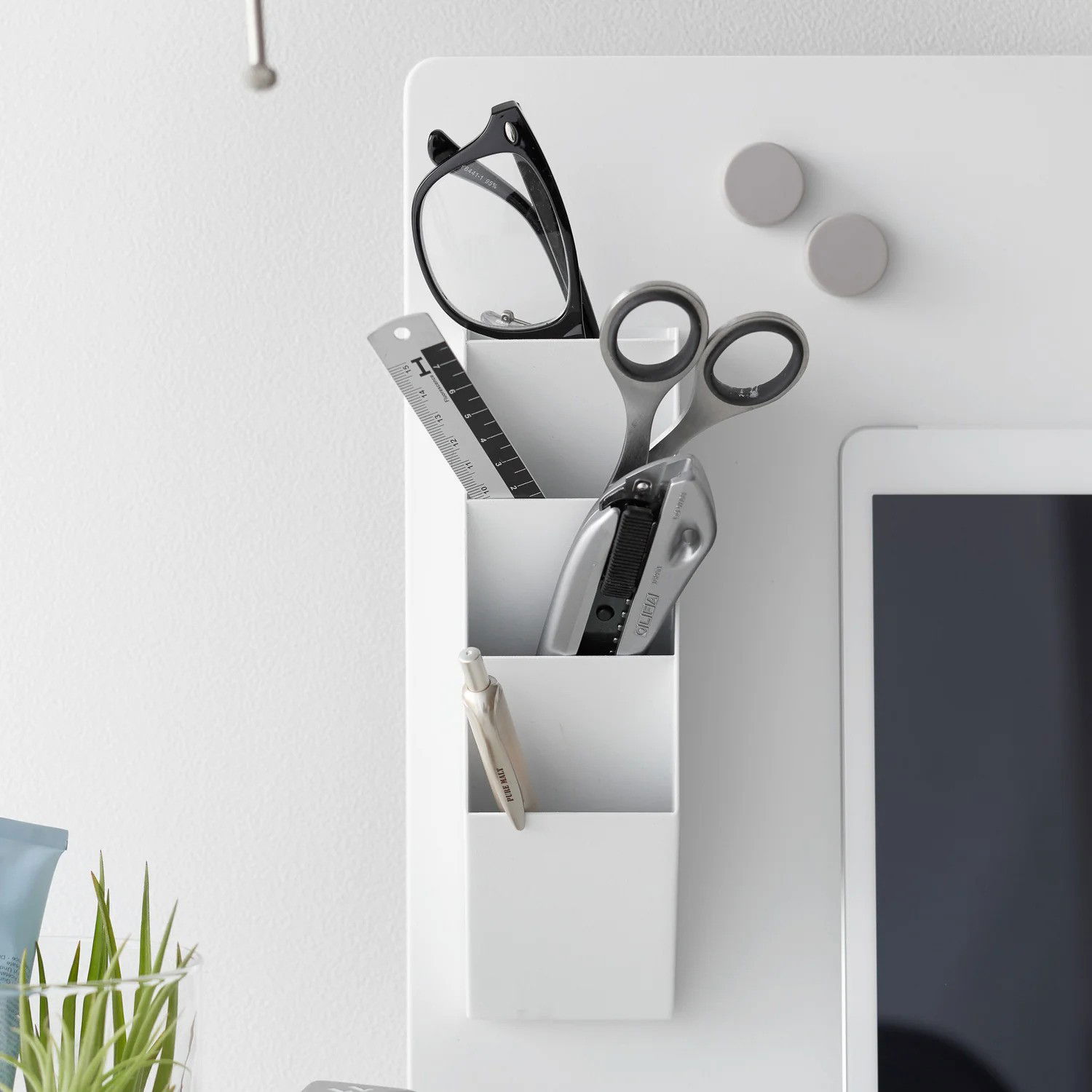 Η μαγνητική μολυβοθήκη στερεώνεται σε μεταλλικές επιφάνειες, όπως το Μαγνητικό Πάνελ Γραφείου ή το ψυγείο, παρέχοντας πρακτική αποθήκευση για στυλό και χαρτικά.