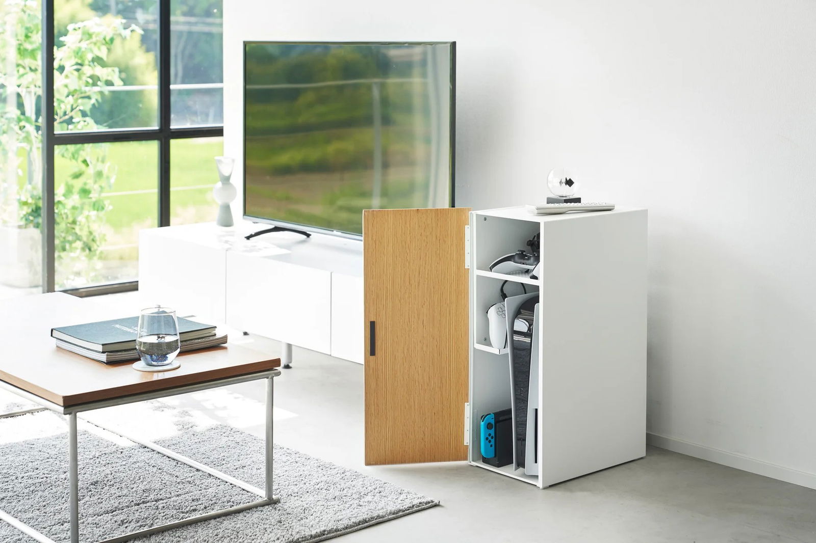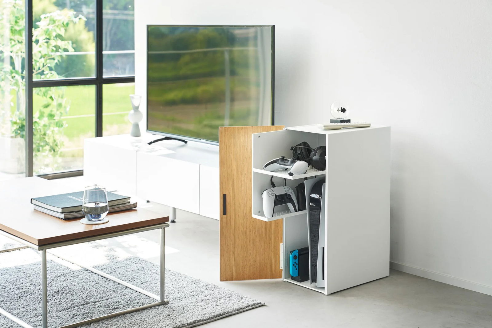 Το ντουλάπι οργάνωσης για κονσόλες παιχνιδιών, θα σας εξασφαλίσει τακτοποιημένο χώρο στο playroom! To design με την ανοιχτή πλάτη αποτρέπει την υπερθέρμανση, ενώ η ξύλινη πόρτα προσθέτει στυλ. Τα δύο επεκτεινόμενα ράφια προσφέρουν οργάνωση για τα χειριστήρια και άλλα αξεσουάρ.