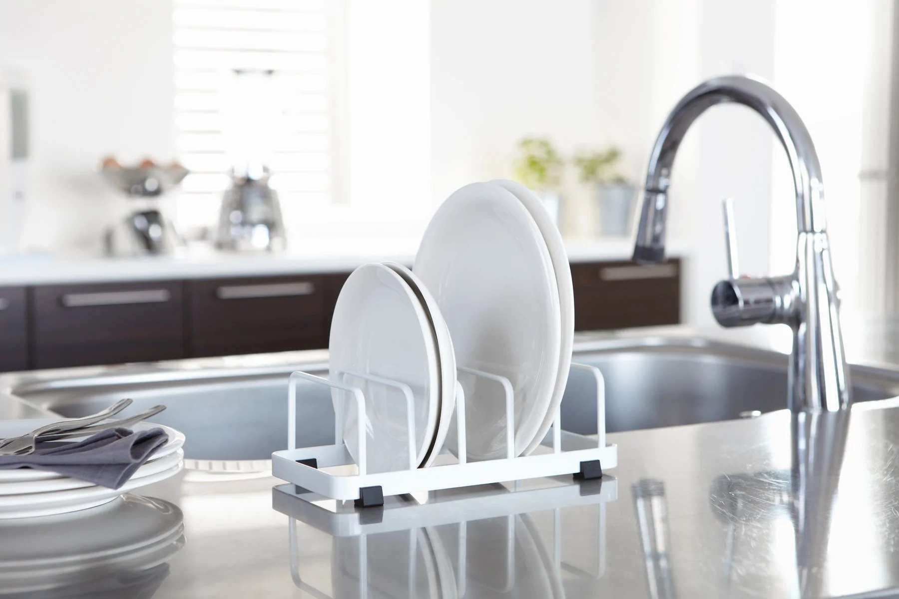 Χρησιμοποιήστε αυτή την βαση δίπλα στο νεροχύτη για να στεγνώσουν τα πιάτα ή μέσα στο ντουλάπι για να τακτοποιήσετε τα πιάτα όρθια και χωρισμένα ανά μέγεθος.