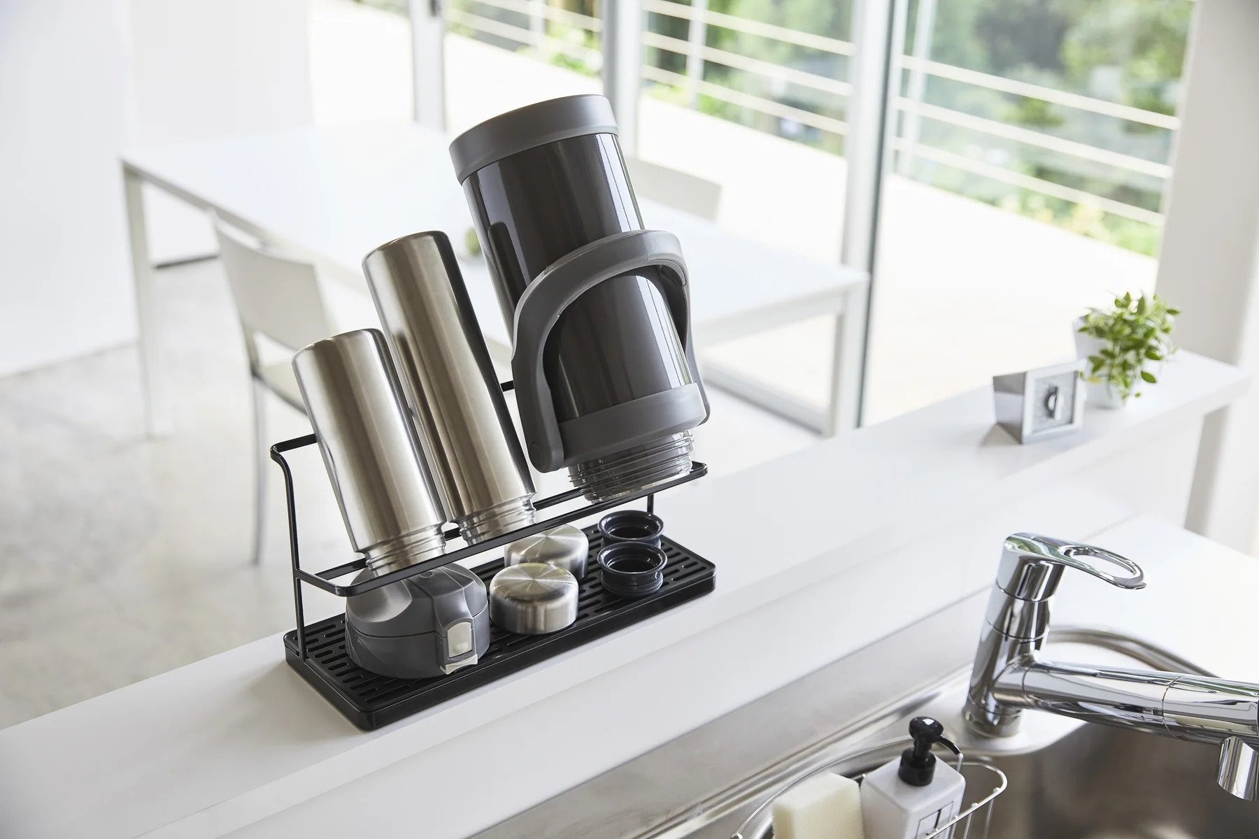 Επιφάνεια στραγγίσματος ιδανική για μπουκάλια, και βαζάκια! Τοποθετήστε τα μπουκάλια στο επάνω ραφάκι να στεγώσουν και τα καπάκια στον δίσκο, ωστε να μη τα ψάχνετε ποτέ!
