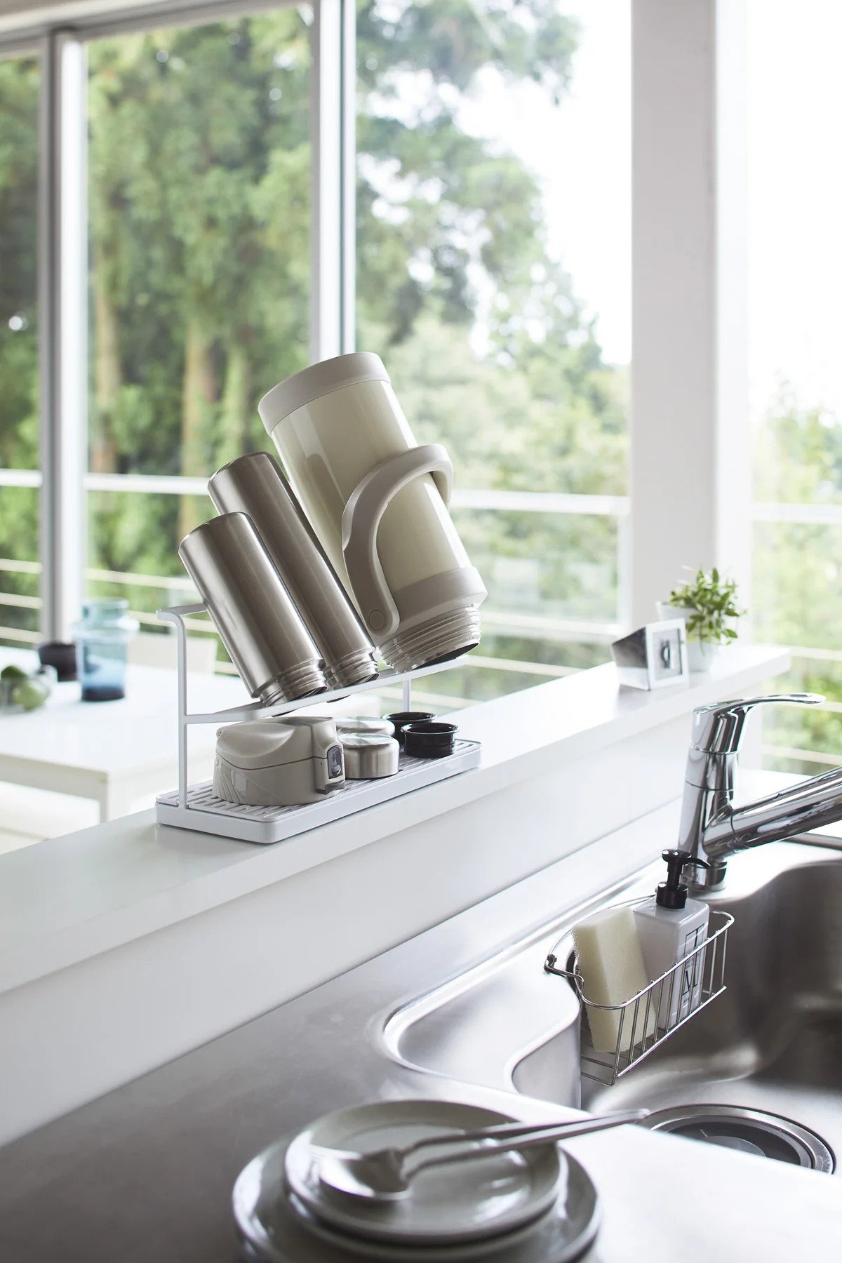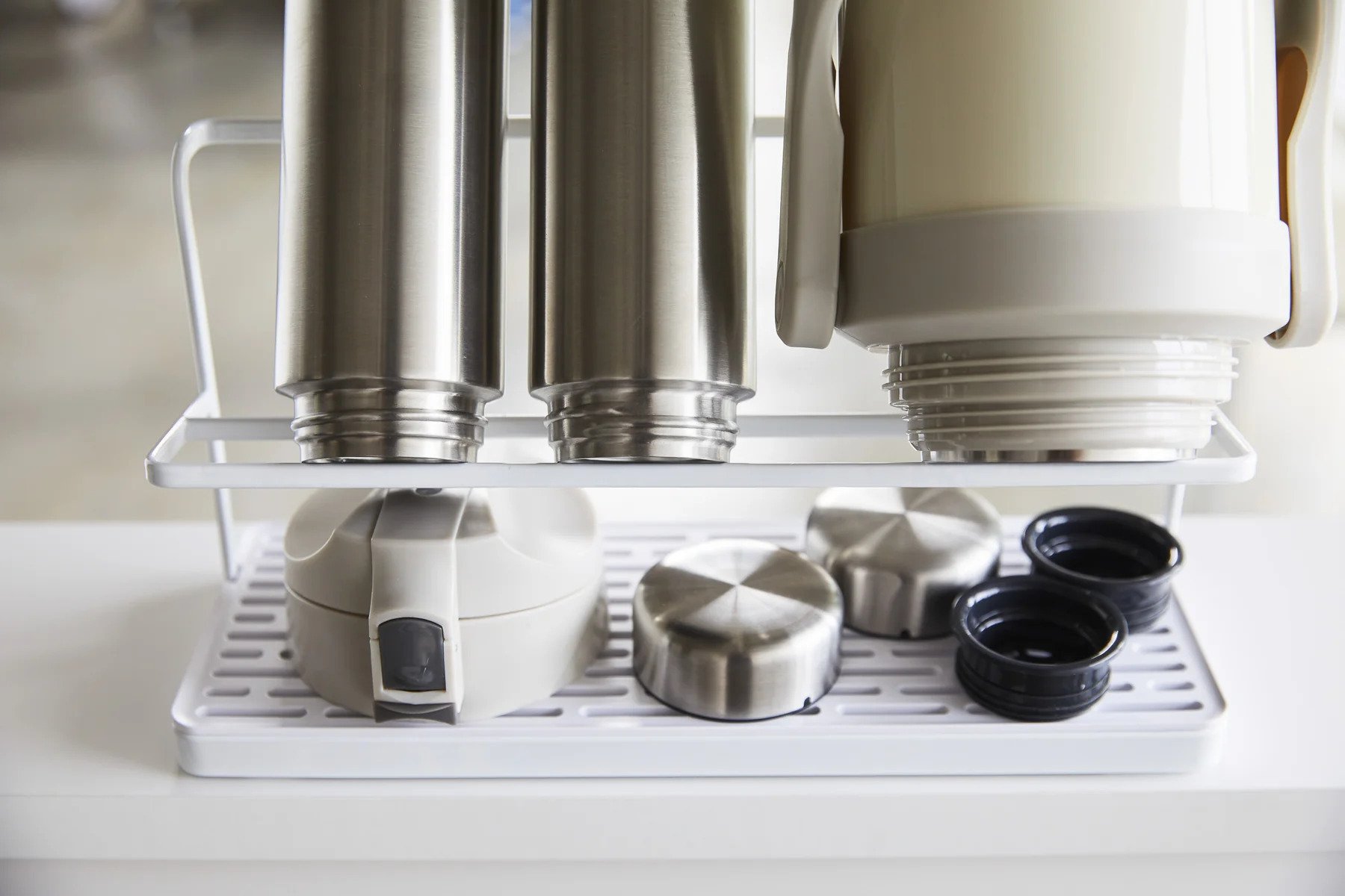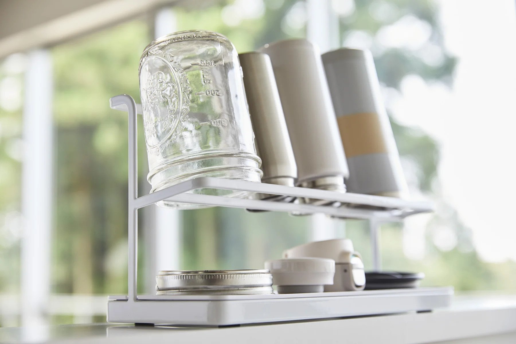 Επιφάνεια στραγγίσματος ιδανική για μπουκάλια, και βαζάκια! Τοποθετήστε τα μπουκάλια στο επάνω ραφάκι να στεγώσουν και τα καπάκια στον δίσκο, ωστε να μη τα ψάχνετε ποτέ!