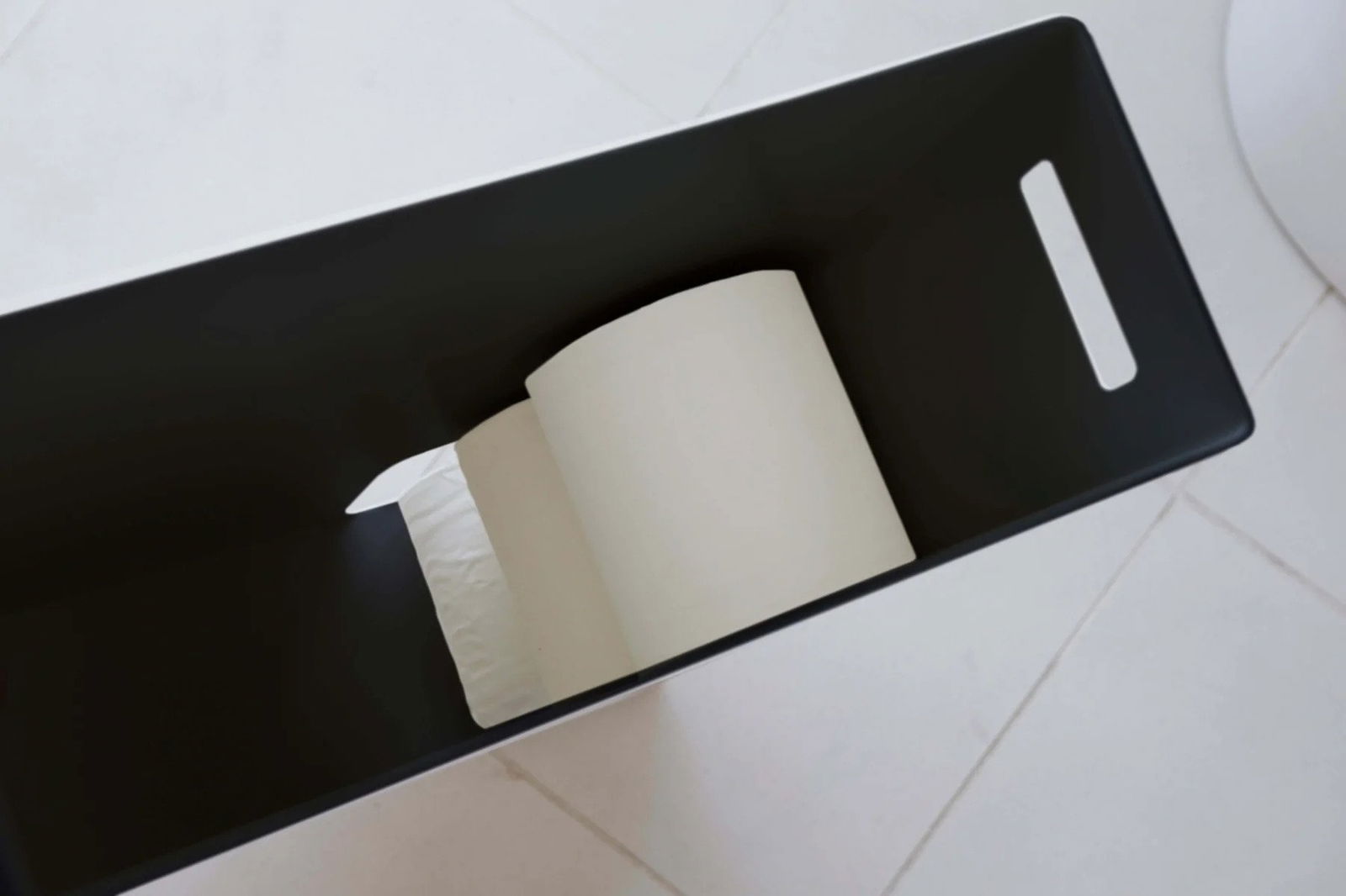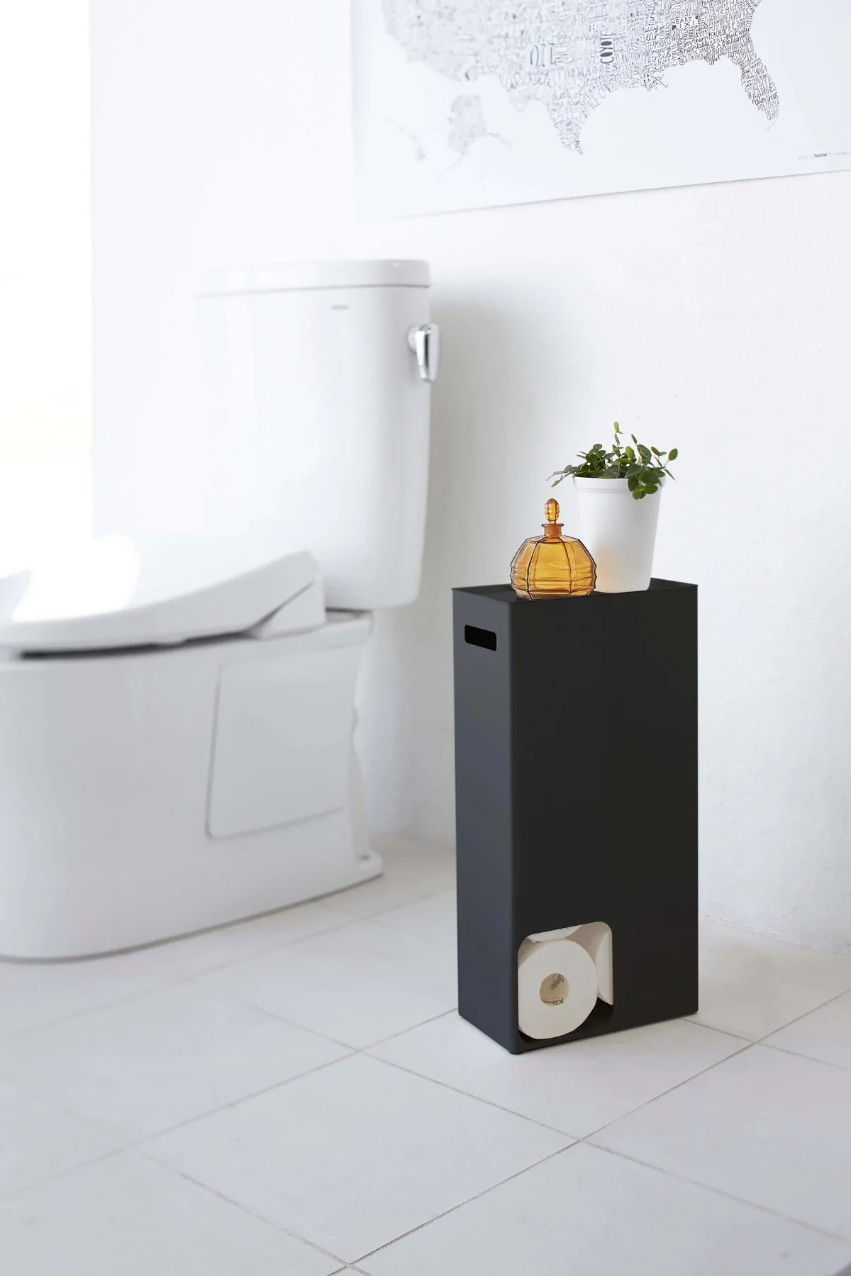 Μια νεότερη, πιο λεπτή έκδοση της εύχρηστης και κομψής συσκευής αποθήκευσης χαρτιού υγείας. Μπορείτε επίσης να τοποθετήσετε στο πάνω μέρος αρωματικό χώρου ή μωρομάντηλα.