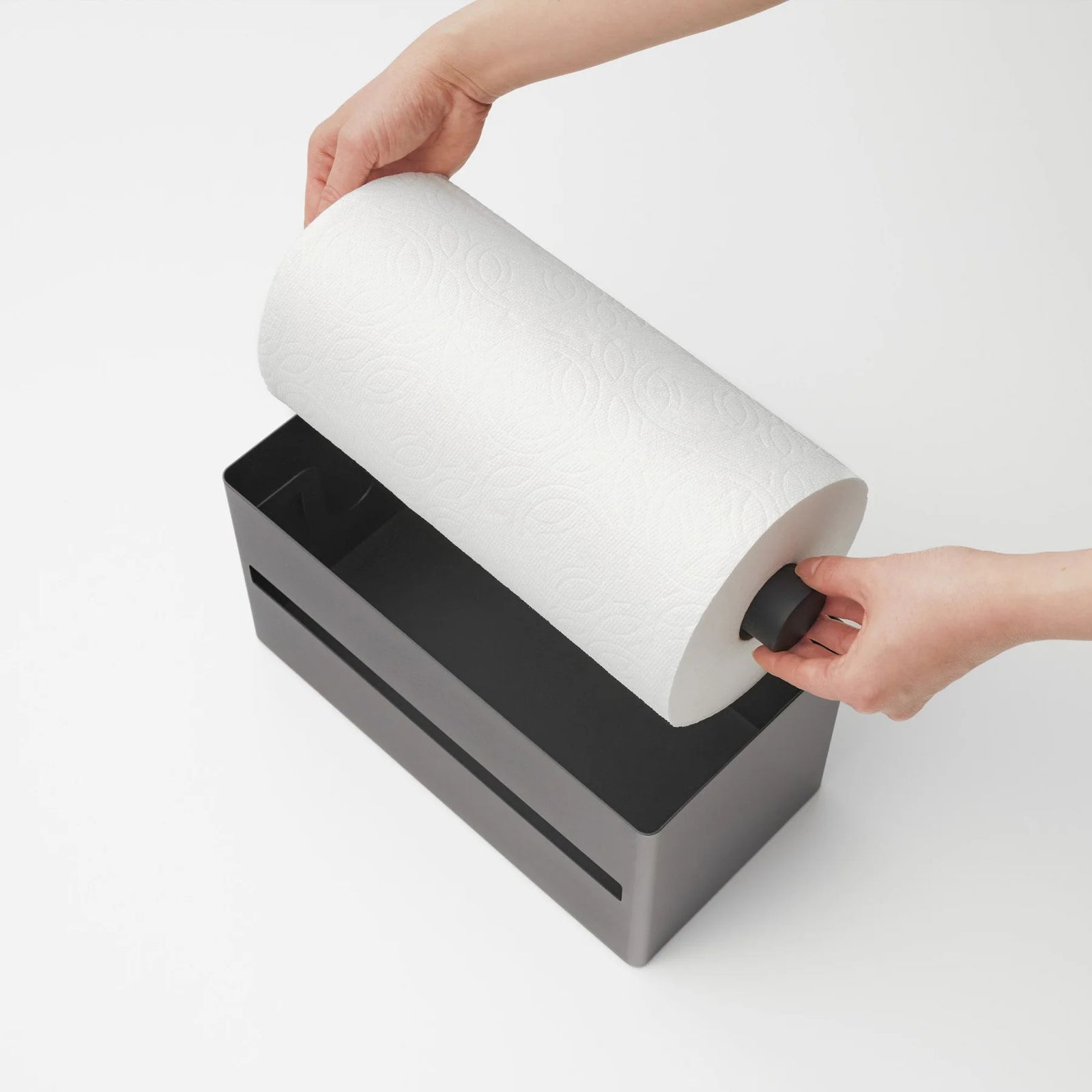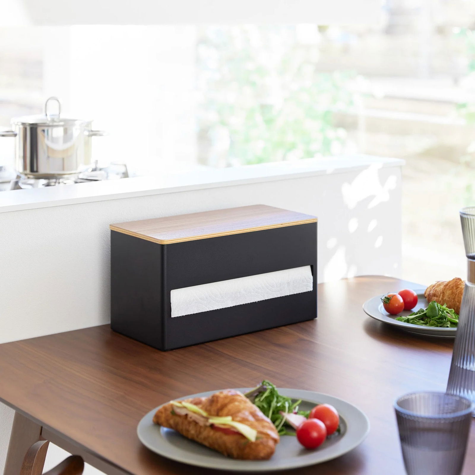 Η θήκη για χαρτί κουζίνας είναι μια λειτουργική και κομψή προσθήκη σε κάθε κουζίνα, με μια στιβαρή θήκη από ατσάλι και ξύλινο καπάκι.