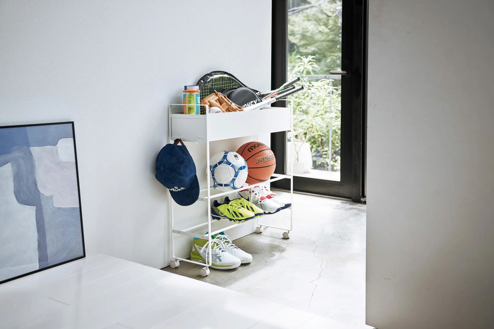Παρέχει χώρο αποθήκευσης σε τρία επίπεδα για διάφορα είδη οικιακής χρήσης, εξοπλισμένο με ρόδες που του επιτρέπει την εύκολη μετακίνηση, ενώ το ρυθμιζόμενο διαχωριστικό στο επάνω καλάθι εξασφαλίζει καλύτερη οργάνωση.