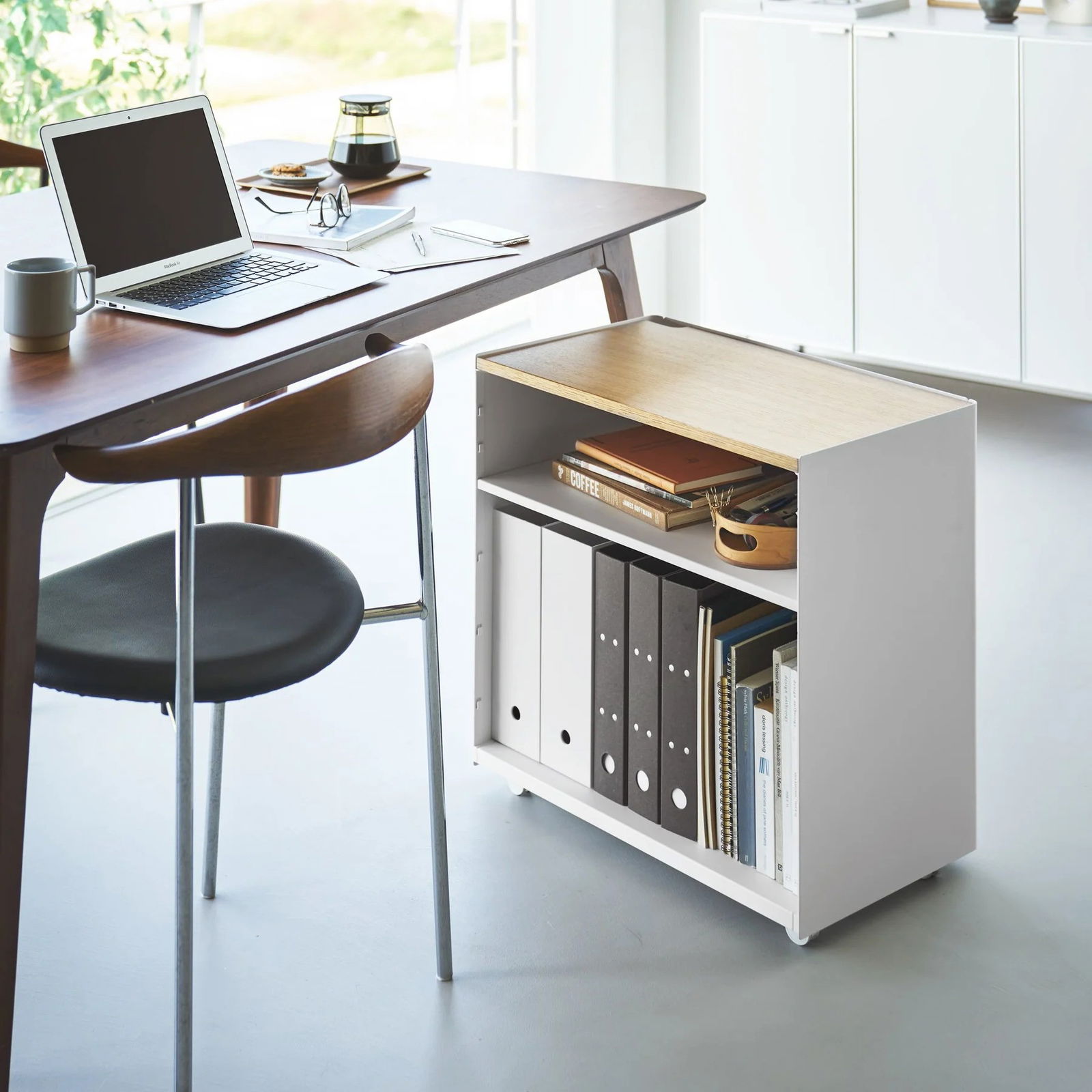 Βαγόνι αποθήκευσης δύο επιπέδων με ρυθμιζόμενα ράφια, παρέχει δύο επίπεδα αποθήκευσης και διαθέτει κλειστό πλαϊνό πάνελ για διακριτική οργάνωση.
