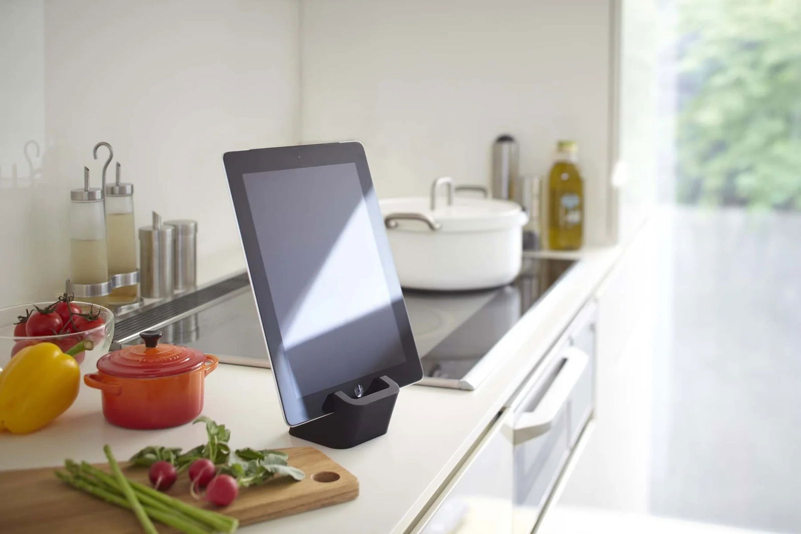 Βάση στήριξης για tablet με έξυπνο σχεδιασμό που μοιάζει με κύβο και μπορεί να αποθηκεύσει επίσης τα καλώδια φόρτισης.