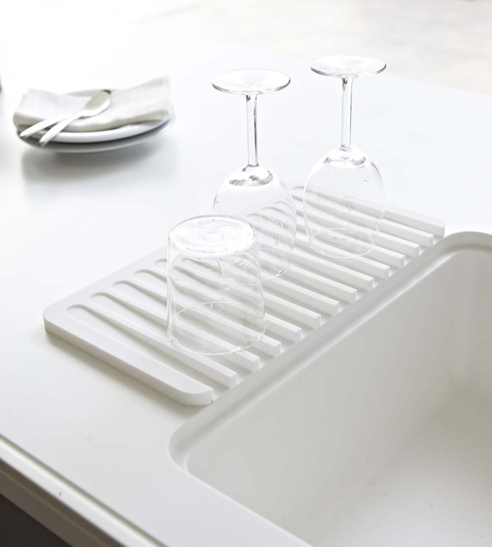 Βάση στραγγίσματος κουζίνας με κλίση προς το νεροχύτη για να απομακρύνεται η περίσσεια νερού από τα πλυμένα σκεύη. Μια κομψή προσθήκη στην κουζίνα σας που καταλαμβάνει ελάχιστο χώρο και μπορείτε να την μαζέψετε όταν δεν την χρειάζεστε!